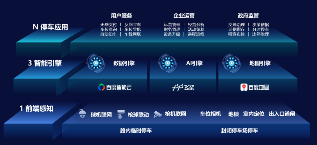 “1”是指一套前端感知,百度Apollo可提供自研高性能城市停车资源前端信息采集终端,覆盖所有城市停车场景,如临时停车场、城市路外(露天、地下)封闭停车场。